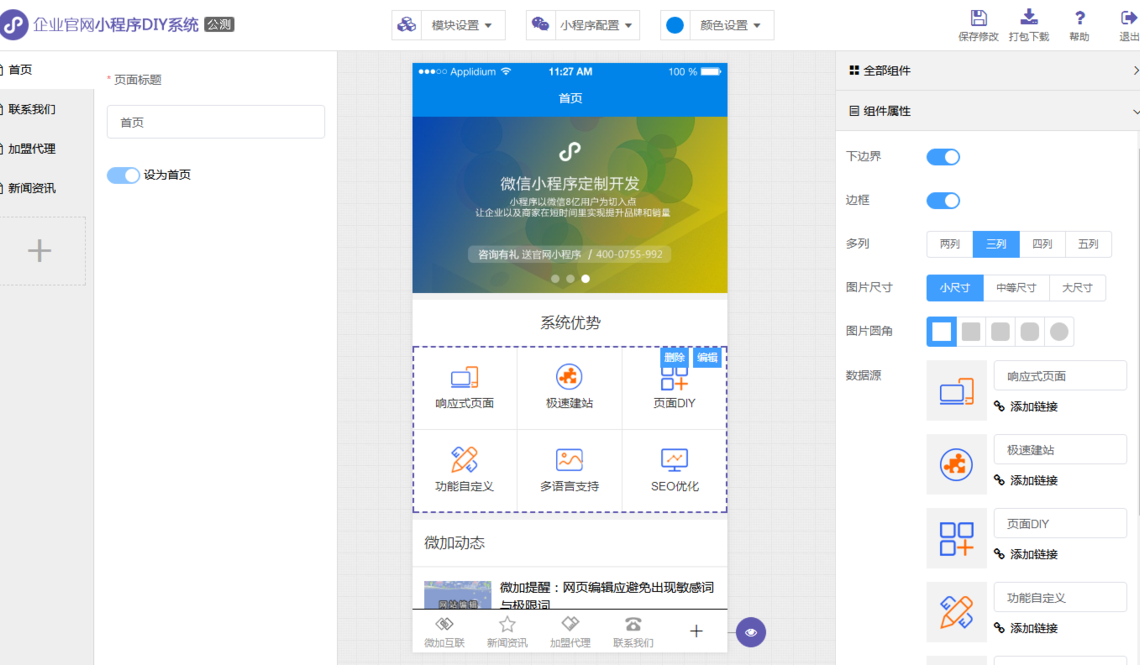 微加建站系統持續更新更多最前沿的功能模塊和最前衛的效果插件